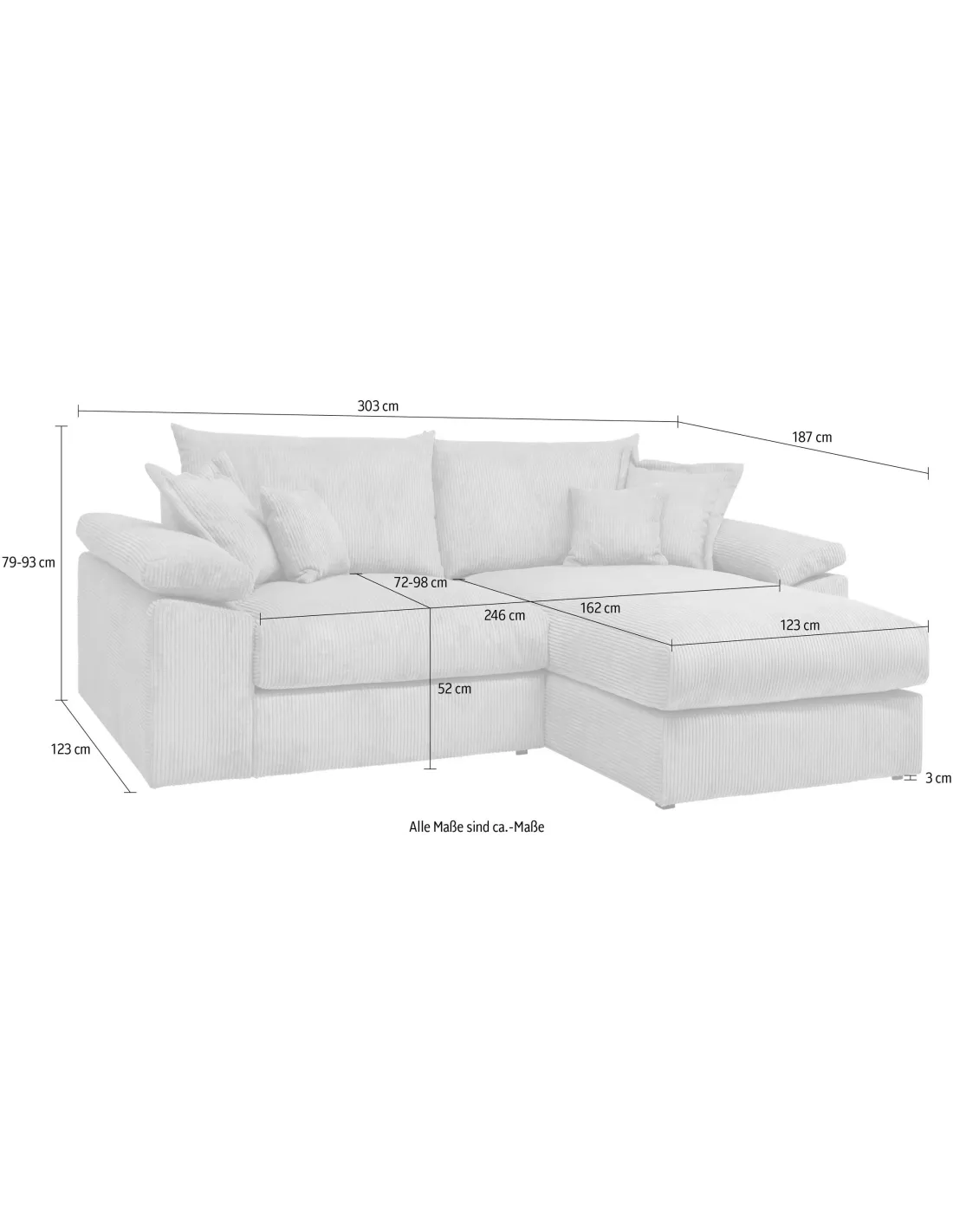 Neu Startseite Big-Sofa, Mega-Ecksofa in Cord, XL L-Form, Breite 246 cm, mit Federkern & 4 Zierkissen WG6856N0ST009960 899,99 € In den Warenkorb