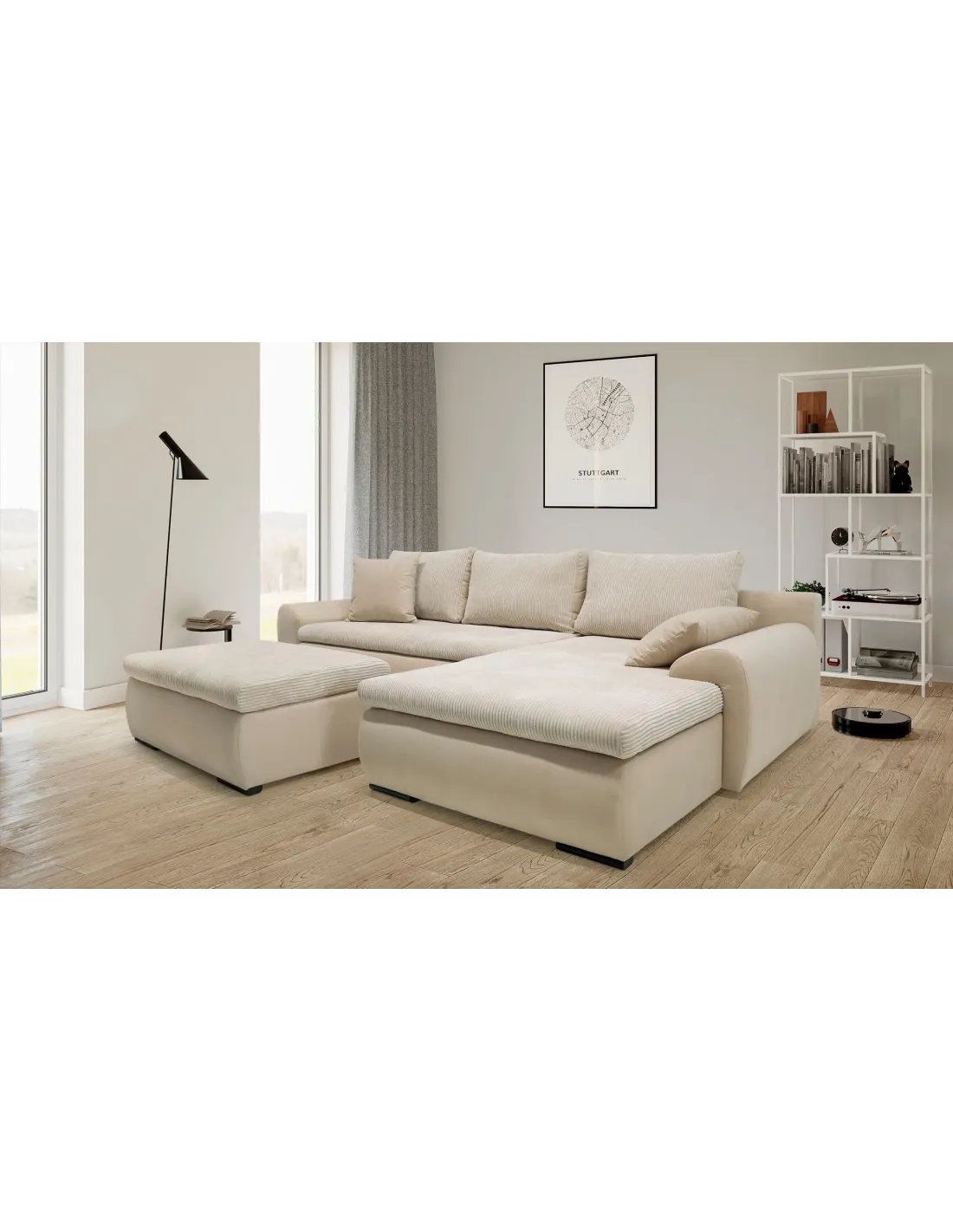 Das Ecksofa Win (285 × 176 cm) verbindet zeitloses Design mit praktischer Alltagstauglichkeit. Mit seiner großzügigen Sitzfläche bietet es Platz für die ganze Familie – und wird bei Bedarf im Handumdrehen zur gemütlichen Schlafgelegenheit.
